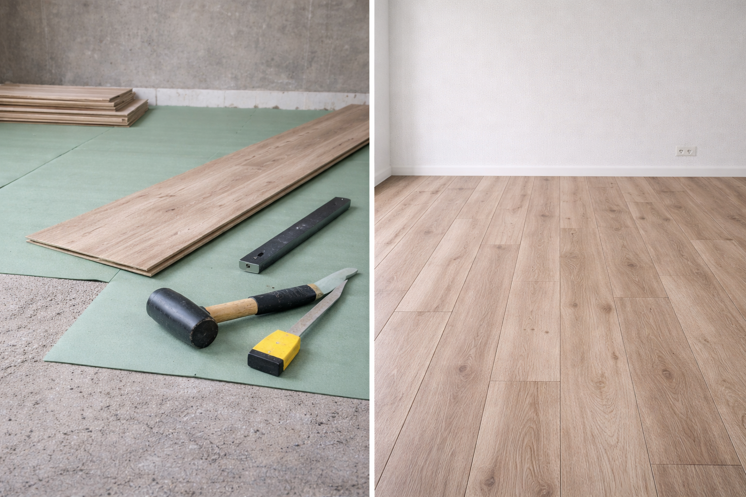 Verlegung von Laminat, Vinyl und Teppichböden. Sauber, präzise und zuverlässig ausgeführt. Der passende Boden für jeden Raum.