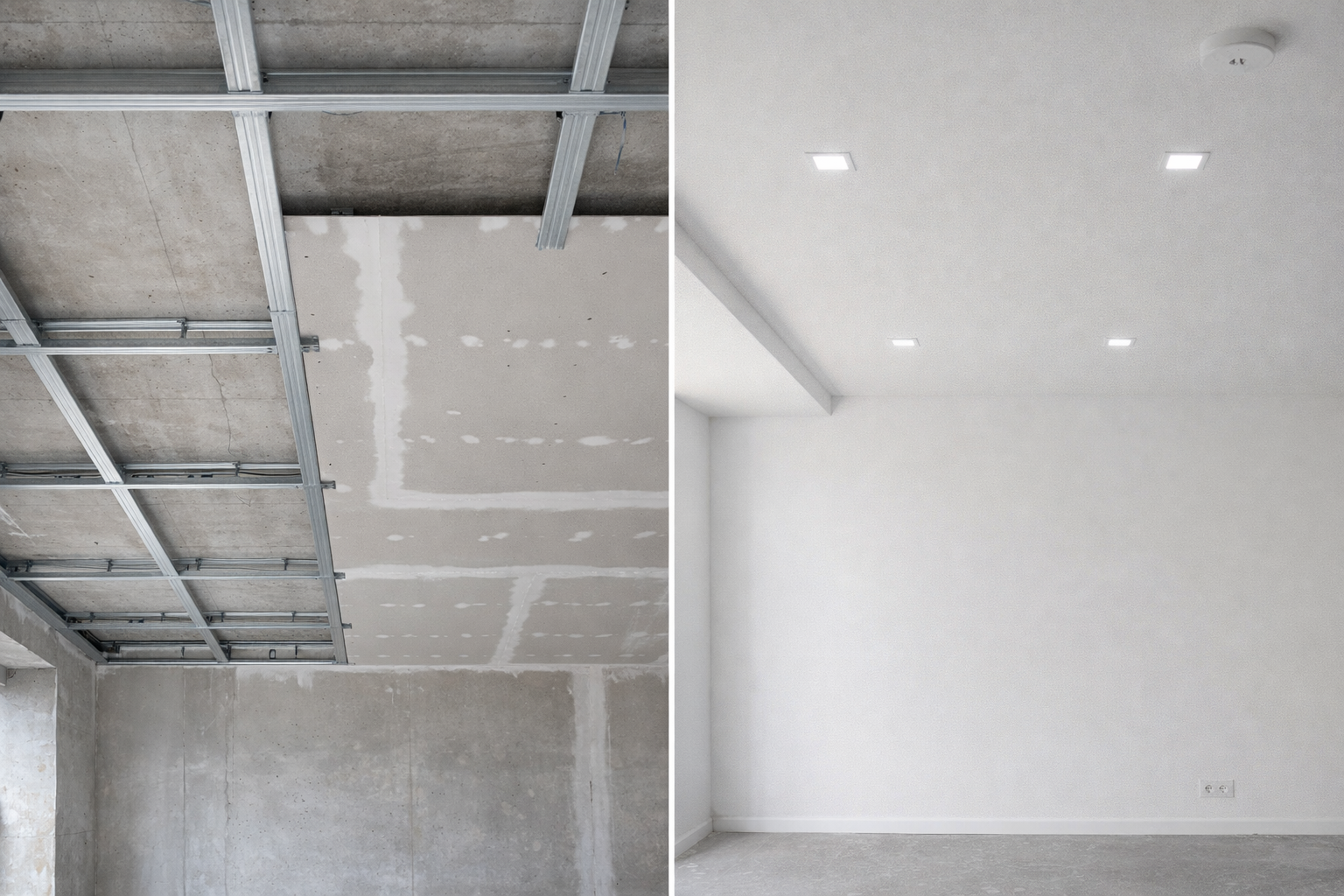 Spachtelarbeiten für glatte Wände und Decken (Q2 / Q4). Die perfekte Grundlage für Maler-, Tapezier- und Bodenarbeiten. Sauber, eben und fachgerecht ausgeführt.